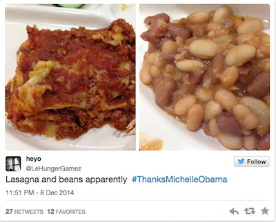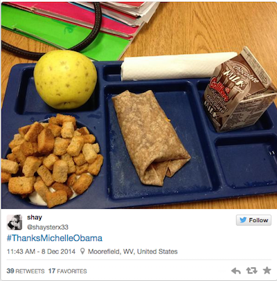 …perhaps because children recognize rank hypocrisy when they hear and see it. Case in point: submitted for your perusal, the luncheon bill of fare enjoyed by Sasha and Malia at the exclusive Sidwell Friends School: