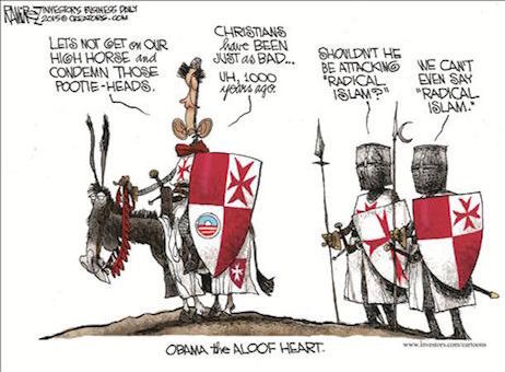 What would be his reaction to that? Pretty much what it is for most throughout the Islamic world — shame. As many have noted, Islam is a shame culture (the kind of society that will go berserk over cartoons) and, like it or not, our president is part of it culturally. That does not mean he is stoning adulterers or cutting off the hands of thieves or treating women like chattel, but it does mean he is genuinely and quite deeply ashamed of the religion he, in part, came from. He cannot adjust to or accept the calamities it is causing. Unlike the president of Egypt, he cannot name it.