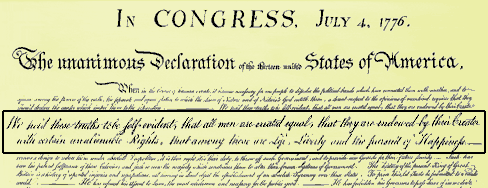 “We hold these truths to be self-evident, that all men are created equal, that they are endowed by their Creator with certain unalienable Rights, that among these are Life, Liberty and the pursuit of Happiness.–That to secure these rights, Governments are instituted among Men, deriving their just powers from the consent of the governed…”