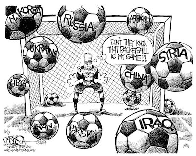 It also explains the abject failure of said foreign policy. Think about it; the only reasons Barry’s domestic idiocies survive is (a) the presence of a fawning MSM which shields his every misstep through either deliberately distorted reporting or a total news blackout, and (b) the craven cowardice of a Republican leadership unwilling to contest his unconstitutional executive orders.