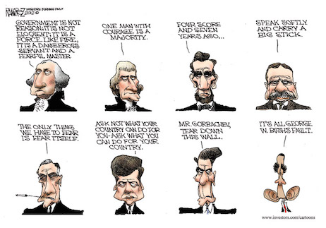 Critics used to say they opposed Obama’s redistributionist programs, but conceded that he must be a pleasant guy. Supporters lamented Obama’s frequent inattention to detail but reminded everyone how charismatic the president was. Both diagnoses are probably mistaken.Snarkery is a character flaw of thin-skinned insecurity and juvenile mean-spiritedness — and embarrassing in a president.“