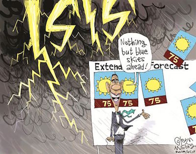 “…In fact, less than 24 hours after Obama suggested that Congress should forbid him from using ground troops against Islamic State terrorists, Islamic State terrorists were busy capturing a western Iraqi town just 13 minutes away from the base where 320 U.S. Marines are on the ground, training hapless Iraqi forces. Forget ground forces to defeat ISIS; the way Obama is managing things, we may need ground forces just to rescue our ground forces.