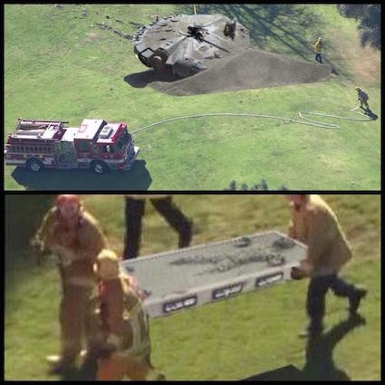 Oh, and we’re glad to see Harrison Ford is going to make; as they say, any landing you can walk away from…or get carried away from with a steady pulse and regular respiration. What intrigues us wasn’t Indiana’s controlled crash, but rather this series of disturbing photographs clearly indicating Han had more than The Force with him that day: