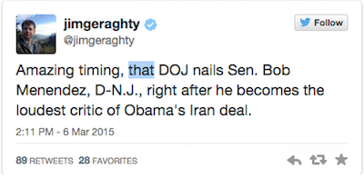 …had Menendez not been as vocal in his opposition to The Obamao’s feckless foreign policy initiatives with Cuba and Iran?!? This is not to say Menendez isn’t corrupt; really, he’s from New Jersey. It’s just that we doubt you’d have seen any action on the part of Justice had he remained silent…like the rest of the Dimocratic contingent on Capitol Hill.