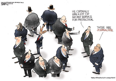 In a related item, Commentary Magazine‘s Seth Mandel tells a tale of two candidates, two competing political philosophies and, indeed, two incompatible world-views; first, Dimocratic despotism, totally terrified of answering any question and utterly incapable of addressing any issue absent a pre-screened audience and pre-scripted response: