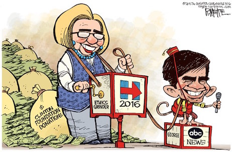 …It is impossible to see how Stephanopoulos could do his job with any integrity in an environment in which the Clintons and their foundation will be central to the political news for the foreseeable future. Certainly not after concealing his relationship with the foundation. ABC News owes it to itself to live up to at least the standards of a small-town weekly newspaper. It owes them a lot more than that, in fact, but it cannot deliver the goods with Stephanopoulos at the desk.”
