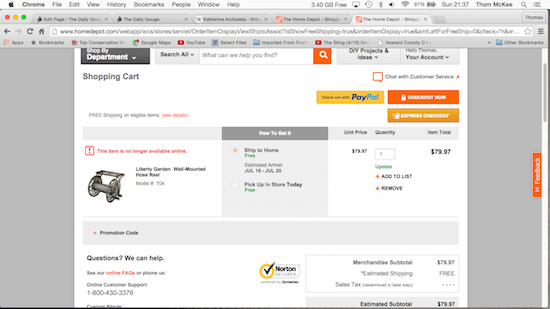 Still undeterred, this once-loyal Depot customer drove “home” to order the reel of our dreams online, enduring the entire purchase process only to be informed, after the fact…