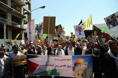 …Quds Day is fun for the whole family. As one father told the semiofficial Fars News Agency in a video interview, “Our children who are less than a year old are tomorrow’s soldiers against Israel.” The infant son he held in his arms was dressed in camouflage gear, with a Yasser Arafat-style kaffiyeh around his neck.