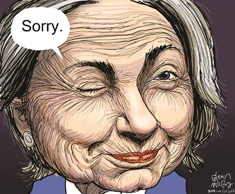 This raises the question: Who gives a rat’s ass? Were you demanding an apology from Hillary Clinton? I wasn’t. I wanted the facts. And those are still in short supply. Which raises a second point: What the Hell is she talking about when she says the State Department “allowed” her private, off-site, server? First off, Hillary Clinton was running the State Department. Does she mean that she allowed herself to do it? If so, this may be the greatest example of Clintonian weasel-wording yet. If she doesn’t mean that, can we have the name of the official who told Clinton it was okay? Can we have the paperwork? Or is the Clinton team still drawing straws to see who gets to take one for the team? Which brings us back around to this apology business.