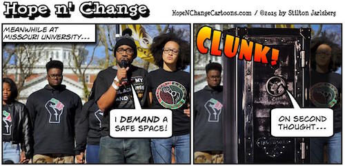 There has been some tut-tutting, even among liberals, about modern university students’ hypersensitivity. But let’s not kid ourselves — though it is couched in the language of safety, what these little snowflakes want is repression. Brenda Smith-Lezama, for example, is the vice president of the Missouri Students Association. Asked about efforts on the Missouri campus to “muscle” student journalists away from a public event, she offered a view that would make Castro proud: “I personally am tired of hearing that First Amendment rights protect students when they are creating a hostile and unsafe learning environment for myself and for other students here,” she told MSNBC…”