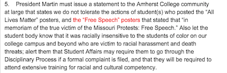 Case in point: Amherst College’s Delicate Little Flowers demand the suspension of the First Amendment and reinstitution of the Gulag.