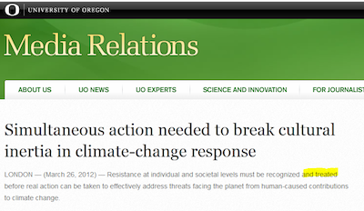 The idea that climate skeptics are mentally ill is nothing new: Oregon-based professor of “sociology and environmental studies” Kari Norgaard has declared climate skepticism a mental illness that must be “treated.”