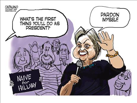 Unfortunately, both for the country and the rule of law, the satire above accurately depicts reality if Hillary’s elected…only it will be her aides she pardons. As the crimes committed and damage to national security are undeniable, somebody‘s gotta hang; and it sure as Hell ain’t gonna be Bill’s worse half. So Huma and Cheryl will be indicted, then keep their lips zipped until President Rodham-Clinton grants them executive clemency…along with life-long financial security and likely a book deal.