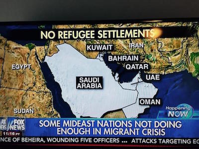 …Saudi Arabia, Kuwait, Bahrain, Qatar, the U.A.E. and Oman, more culturally-connected, not to mention quite wealthy countries taking in these poor, illiterate, huddles Muslim masses?!? What…what’d you say? The threat of terrorism?!?