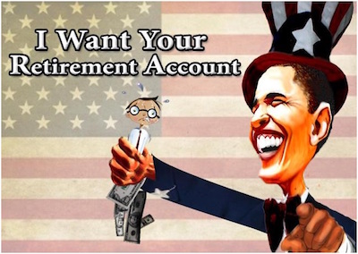 Yeah…so the Progressives purposefully promoting an increasingly anemic economy, who brought us Project Porkulus, Cash for Clunkers, The Utterly Unaffordable Care Act and a myriad of other dubious spending programs, not to mention a doubling of the national debt and 96 million permanently unemployed Americans, now want to manage the nation’s private retirement programs?