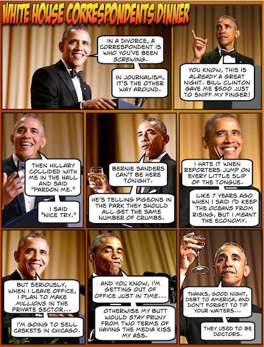 Finally, we’ll call it a wrap with Hope n’ Change‘s satiric look at The Obamao’s last and lamest attempt at humor in the face of all the destruction he’s visited upon the country: