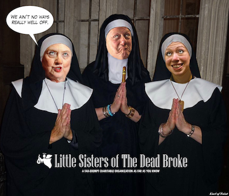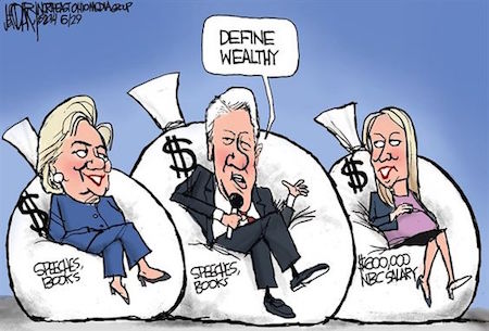 Frankly, we remain amazed anyone would pay a dime to hear anything these lying, licentious shysters have to say…which tells us there’s another motivation behind the monetary support the Clintons receive, whether for speaking engagements or through contributions to what amounts to a retirement/slush fund oh-so-thinly-disguised as a charitable foundation.