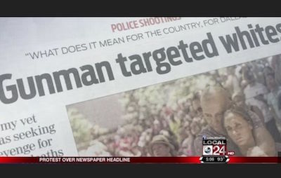 “Gunman targeted whites,” read the lead story headline in the Commercial Appeal, a member of the USA Today network. The headline was accurate, as Dallas gunman Micah Xavier Johnson explicitly talked about wanted to kill white police officers before he was eliminated via robot bomb. That didn’t stop protestors from gathering outside the paper’s office in downtown Memphis on Wednesday to express their displeasure, some holding signs that read “Black Lives Matter.”