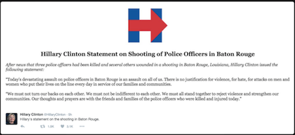 No, Hillary: the only people turning their backs on anything are you and your former boss; and it’s the rule of law in America, both through your words and actions. And THAT, Donald, is what we need, not law and order. Rule by an impartial application of the law and order will naturally follow as surely as night does day; whether in the realm of violent crime, immigration or government email security.