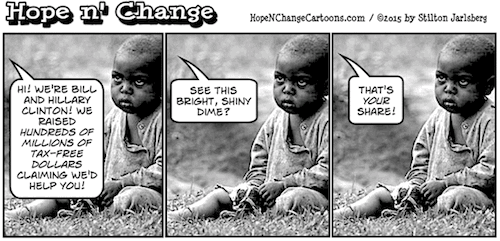 …very hard to swallow, let alone keep down! We’re “left” to conclude ABC‘s research team couldn’t dig up a single word suggesting the Clintons promptly and repeatedly violated said agreement, let alone noting the percentage of the $2B actually spent on its purported programs. As we observed in the June 6th edition of The Gouge, what the Clintons claim publicly…