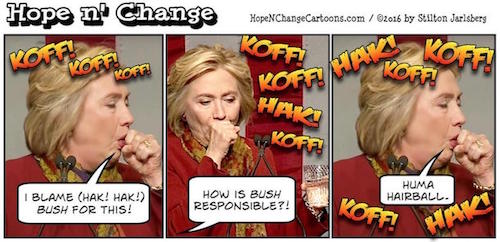Hope ‘n Change, however, offers an alternative explanation for Hillary’s coughing fits: