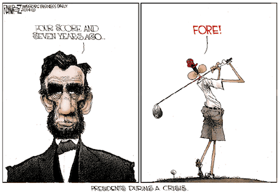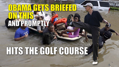 Can anyone recall even the faintest equivalence in their reaction to the amazing indifference the current occupant of the Oval Office has displayed whenever confronting disaster, be it natural or “man-made”?!?