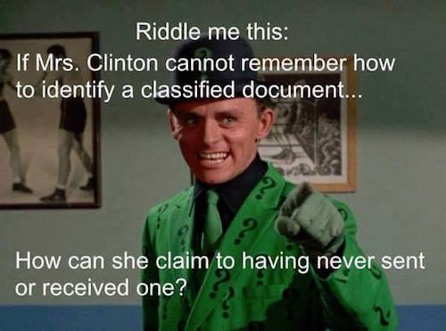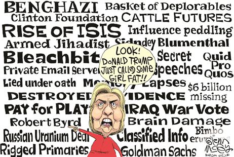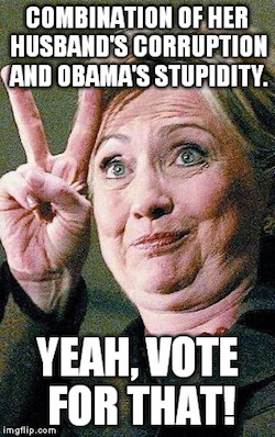 Consider the following: first, in her description of Hillary, she forgets to include “completely corrupt, utterly untrustworthy and singularly self-centered”. Second, “experience” isn’t necessarily in of itself an asset; all Hillary’s “experience” reveals is she’s botched almost every task she’s ever undertaken and worsened nearly every crisis with which she’s ever come in contact, while learning nothing along the way.