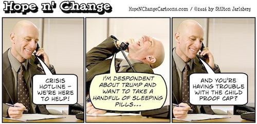 Mind you, our attitude would make us cruel and insensitive if those panicking on the Left were in real jeopardy – but they’re not. The Trump Gestapo will not be beating down doors to grab Hispanics. Women will not be forced to leave the workplace or be required to submit to government pussy grabbing (except during TSA searches and elevator rides with Bill Clinton).