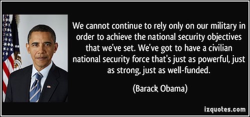 Of course, we’ll concede that it is frightening to hear a presidential candidate call for the creation of a “National Civilian Security Force” to conduct (ahem) special policing within our borders. A new force as large and well-funded as the military. Fortunately, that isn’t anything Trump called for – it was Barack Obama in 2008.