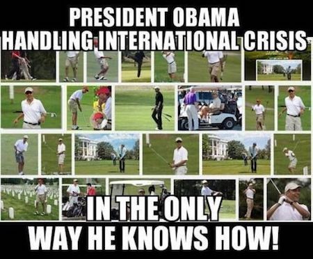 First up, reading the following headline, we were struck by the fact that, unlike the myth of Reagan staying on vacation and golfing immediately following the bombing of the Marine barracks in Beirut…