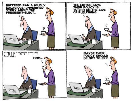 …they’d truly have no standards at all. As evidenced by our Video of the Day (accessible through link #2 at the top of the page under our Quote of the Day), the explanation offered by Buzzfeed editor-in-chief Ben Smith as to why his website published a report they knew to be untrue doesn’t even pass the smell test of Chuck Todd; which, given the pungent odor of Progressive hypocrisy clinging to Chuck is saying something.