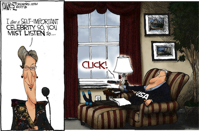 Congratulations on your award last night. You’ve had a long and successful career. Bravo for you. I’m sorry to say, I personally don’t like your films or your acting, but I guess I’m just another deplorable who watches football and “mixed” martial arts when John Wayne movies aren’t on TV.