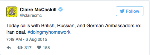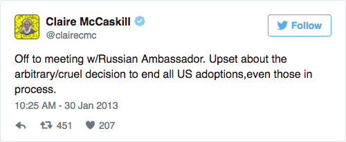 In a pair of tweets first unearthed by National Review’s Charles C.W. Cooke, McCaskill twice wrote messages about meetings with Kislyak, in 2013 and 2015: