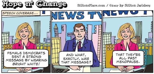 Let’s distill this down: following an upset in November of staggeringly historic proportions, the Dimocratic response to the best speech The Donald could have possibly delivered was…a former governor of a state Trump won by over 30% touting the highly-dubious success of Obamacare, which is failing miserably everywhere else in the country…and a 24-year-old illegal alien lecturing America…in Spanish…why the U.S. should accept, house, feed and educate the entire Third World…with screeds on women’s rights, climate change and LGBTQ issues thrown in for good measure.