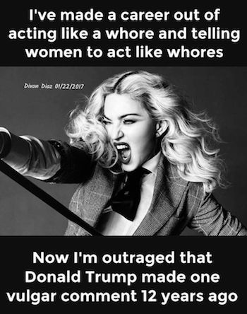 In a related item of inherent Liberal inferiority, in Monday’s Morning Jolt, Jim Geraghty relates how in Madonna’s latest anti-Trump screed…