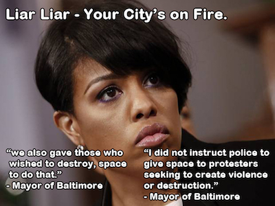 …”Baltimore”?!? We KNEW you could!) As it was, they intervened on a case-by-case basis to stop individual beatings and let rioters vandalize 15 buildings. University police made one arrest. City police reported zero arrests on the night of the riots.