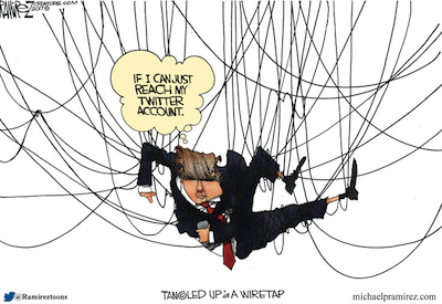 Yet the President clings to his assertion like a drunk to an empty gin bottle, rolling out his press spokesman to make more dubious claims. Sean Spicer—who doesn’t deserve this treatment—was dispatched last week to repeat an assertion by a Fox News commentator that perhaps the Obama Administration had subcontracted the wiretap to British intelligence.