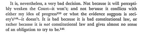 But who needs text when you have “penumbras and emanations”? In his opinion striking down Connecticut’s law, Justice Douglas actually wrote that “specific guarantees in the Bill of Rights have penumbras, formed by emanations from those guarantees that help give them life and substance.”This was sheer nonsense. It was embarrassing rhetoric, but embarrassing rhetoric from the Supreme Court has the force of law.