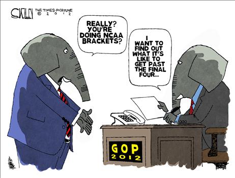 Paul Ryan that is. While the Romney forces cling to their “he’s a mathematical lock” mantra, do they ever stop to wonder whether Mitt, for all his manifest good qualities, is the right man at the right time for the job? Or does his campaign war chest, with which he’s able to train many multiples of resources against his conservative opponents, mean that might makes right? And does the electoral calendar — a perfectly arbitrary and changeable set of rules — outweigh (as the Democrats might say) the fierce urgency of now? In other words, is process more important than principle? Given that we’re dealing with the Stupid Party, the answer at this point is obviously yes.