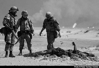 While General Schwarkopf’s power point presentations enlightened the world, the soldiers and Marines found themselves in a Dante’s Inferno, with smoldering vehicles, dead Iraqi soldiers strewn over tank turrets in a man-made darkness of oil fires that smothered any sunlight and the vast remnants of an army, which littered the battlefield: rifles, helmets, sundry equipment and arms and legs that were picked at by packs of roving wild dogs.