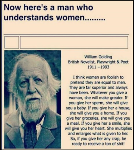 While we’re certain Golding, better known for writing Lord of the Flies, uttered the first two sentences, we’ve no proof the rest of the quote should be attributed to him…which in no way lessens its accuracy.