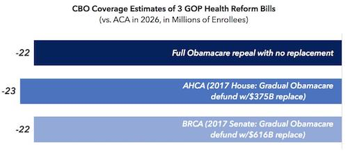 But buried within the CBO’s reports is a key fact: the vast majority of those coverage “losses” occur because the GOP bills repeal Obamacare’s individual mandate. In its July 20 estimate of the most recent version of the Senate’s Better Care Reconciliation Act, or BCRA, CBO says that in 2018, 15 million fewer Americans will have health insurance under the bill, two years before its repeal of Obamacare’s insurance subsidies takes effect.