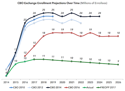 16 million represents nearly three-fourths of the CBO’s estimate of the coverage difference between the GOP bills and Obamacare in 2026. That’s despite the fact that, as I noted in March, even Jonathan Gruber—one of Obamacare’s most famous advocates—believes Obamacare’s individual mandate is having little effect. In a 2016 article for the New England Journal of Medicine, Gruber and two co-authors wrote, “When we assessed the mandate’s detailed provisions, which include income-based penalties for lacking coverage and various specific exemptions from those penalties, we did not find that overall coverage rates responded to these aspects of the law.” (Emphasis added.)