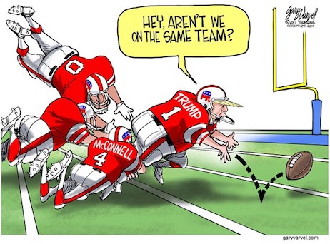 Since we’re on the subject of undiluted gamuts and paradigms made of oak, can someone PLEASE explain to us why, after seven months of The Donald’s benevolent dictatorship, THESE TWO PROGRESSIVE PUPPETS…