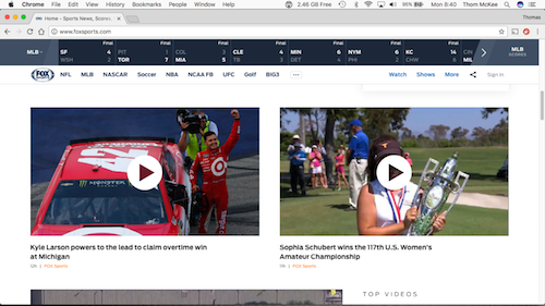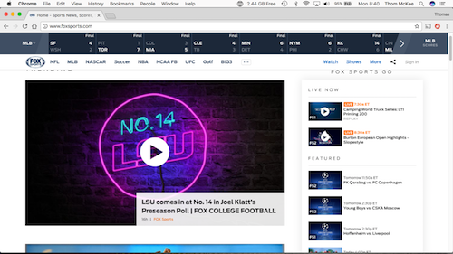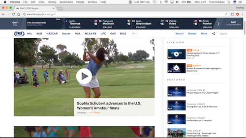Fast forward to this past Monday, the day after the PGA at Quail Hollow. What follows is a screenshot of the FOX Sports home page, both at the top…
