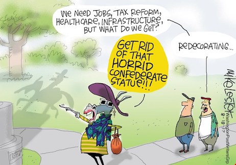 And, of course, local “community organizers” take a sudden interest in monuments that have been sitting in local parks for a century.