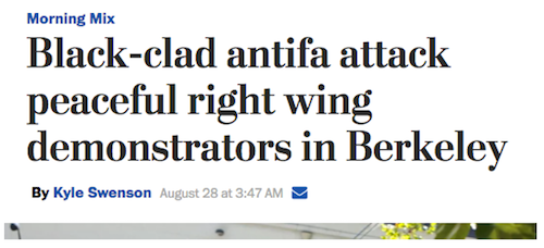 (I’m reminded of that op-ed by Yoav Fromer in the Post declaring, “the willingness to employ organized violence to achieve political goals remains a signature quality of only one side. And it’s not the left.”Violence sure looks like a signature quality of Antifa to me!)