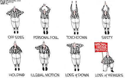 Yeah,…just what the NFL‘s core viewership felt was missing: NOT deserved/appropriate respect for flag and country, but additional displays of adult males contorting themselves as if they had cattle prods inserted in their rectums.