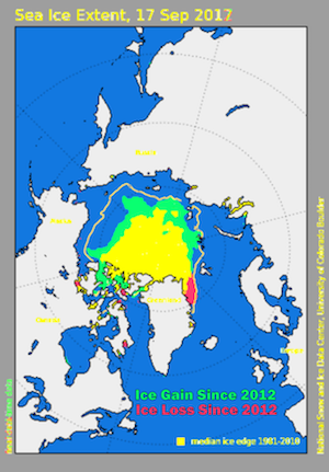 “Arctic sea ice extent is up 40% from this date five years ago.Greenland’s surface gained ten times as much ice as it did five years ago, and was the fifth highest on record…”