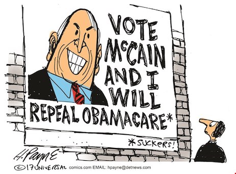 John McCain is another member of this dishonor roll, and he’s been reminding everyone that he kept his word that the process must be bipartisan.His commitment to Senate procedure is apparently more ironclad than his word to Arizona voters, who re-elected him against Tea Party challengers in part on his promise to repeal the law.